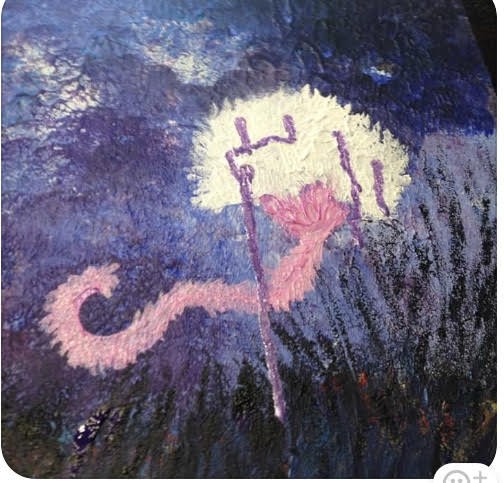 Maya: I was cutting the paint onto the image. and moving the paint with a palette knife over the painting - felt hard going ...the knife was dragging