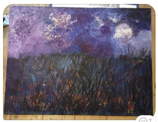 Kassi: That's a very impactful story. I notice I got goosebumps right at the end. I want to be sure I am fully with you... You were feeling frustrated and angry as you were painting in the black grasses, but the black grasses were not dark enough for you, but somehow you became aware of the colours shining from underneath which I called the hot colours - hope that is okay - and somehow a shift took place at this point, you let go of the tree… and this story came to you?