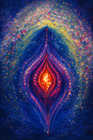 It could be a drawing or painting of your yoni with the words it has been called, and the words you now choose for yourself.