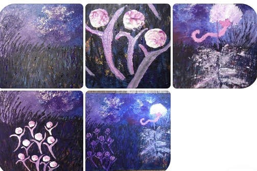 Maya: I was thinking back to the feeling of frustration and anger when painting the grasses... the darkness wasn't dark enough for me... other colours were shining through and I no longer felt protective towards the Tree and painted on top