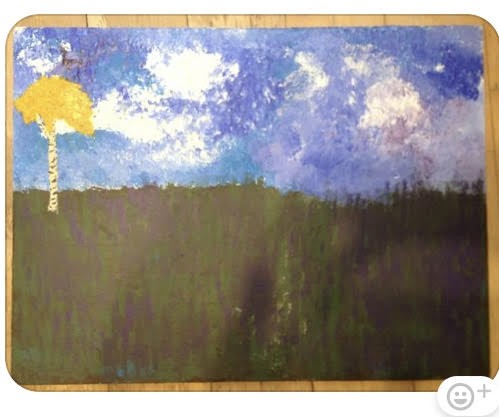 Kassi: That's a very impactful story. I notice I got goosebumps right at the end. I want to be sure I am fully with you... You were feeling frustrated and angry as you were painting in the black grasses, but the black grasses were not dark enough for you, but somehow you became aware of the colours shining from underneath which I called the hot colours - hope that is okay - and somehow a shift took place at this point, you let go of the tree… and this story came to you?