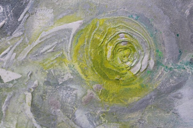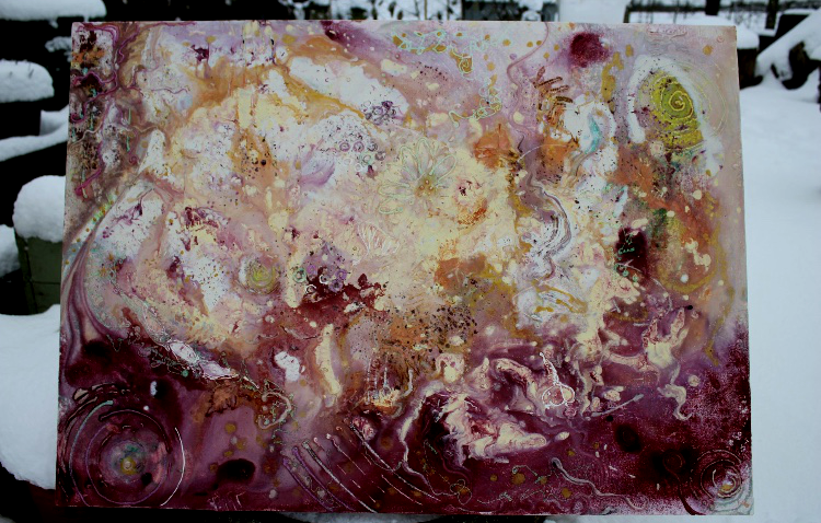 Last year, I painted on it outside in the garden, in the evening, around 7 pm. I think there was a moon visible at the time of painting and so I painted only by the light of the moon. The year before, the beginning, was done inside with my daughter's help, who was 8 at the time.